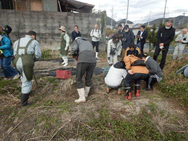 今日は大寒の日でした、私達の所も大雪警報が出ていました、前日そのための対策をして事業所に帰りましたが、幸いにも被害はなく無事にすみました。でも風が強くテントの中にいても皆で今日は寒い日だなと言って過ごしていました。冬野菜ももうすぐ終わりになってきています。そんな中ブロッコリー、姫路1本ネギ・水菜・さくらじまだいこん他収穫して帰ってきました。イチジク園の方は今木の幹にカミキリムシ除けの薬を塗っています。数が多いのでなかなか終わりません、こうしていても幹にカミキリムシが入っています。今イチジク園の増築をしていますので薬も思った以上にいるようです。事業所の方ではミカンの皮の加工に入っています。大根の切干作りからいろいろと大変です。2月に入ると畑の会員さんに最後の配達が待っています。ただいま製作中です。2025年度はぽん酢・イチジクジャム・サブレ・イチジクのセミドライ菓子・みかん菓子を考えています